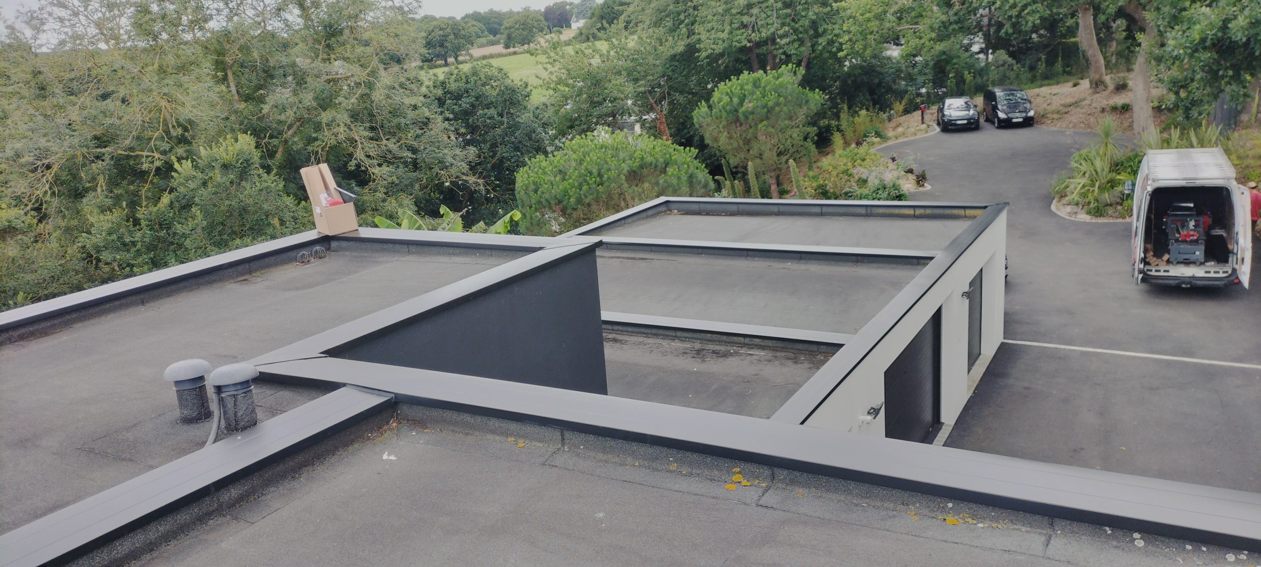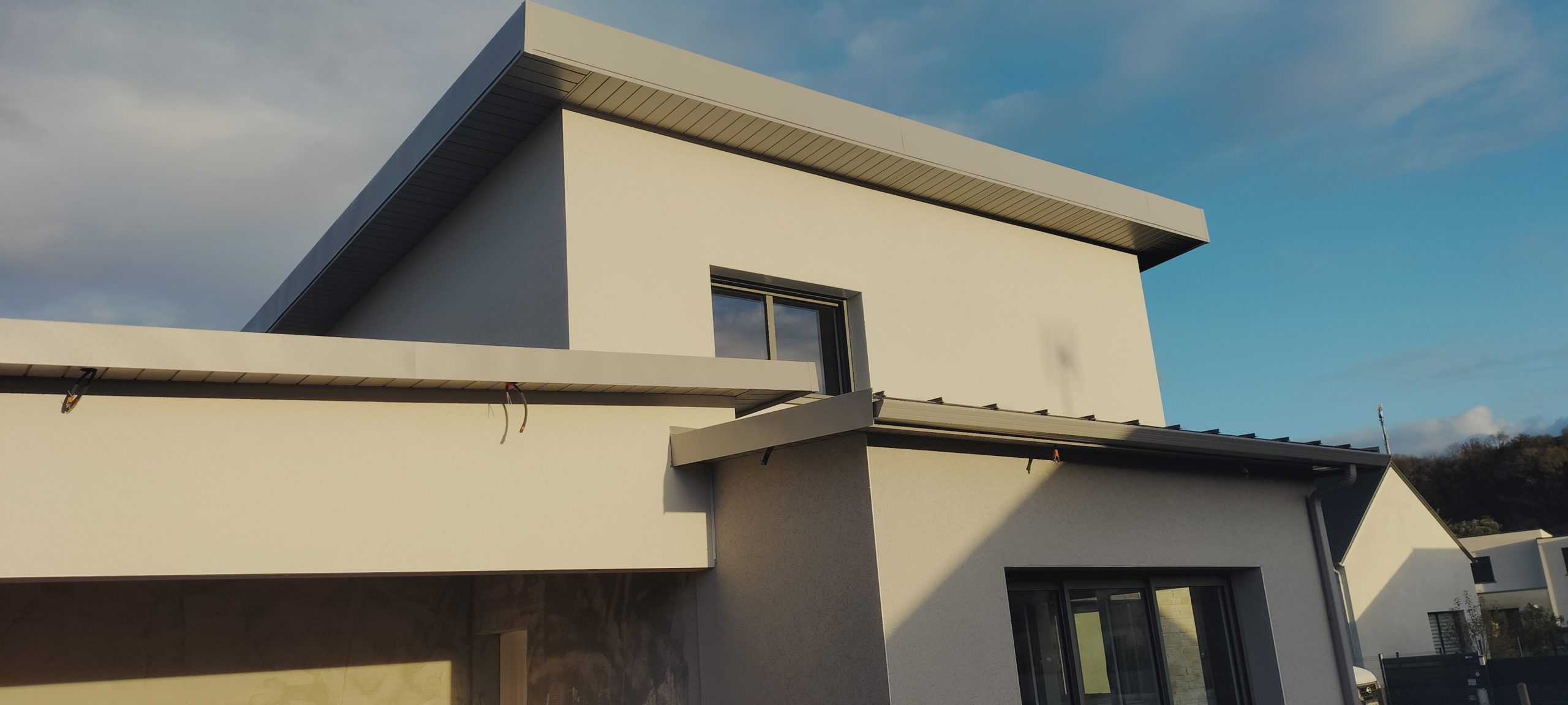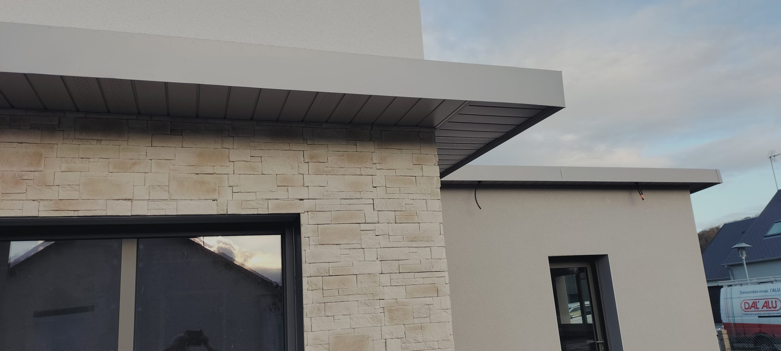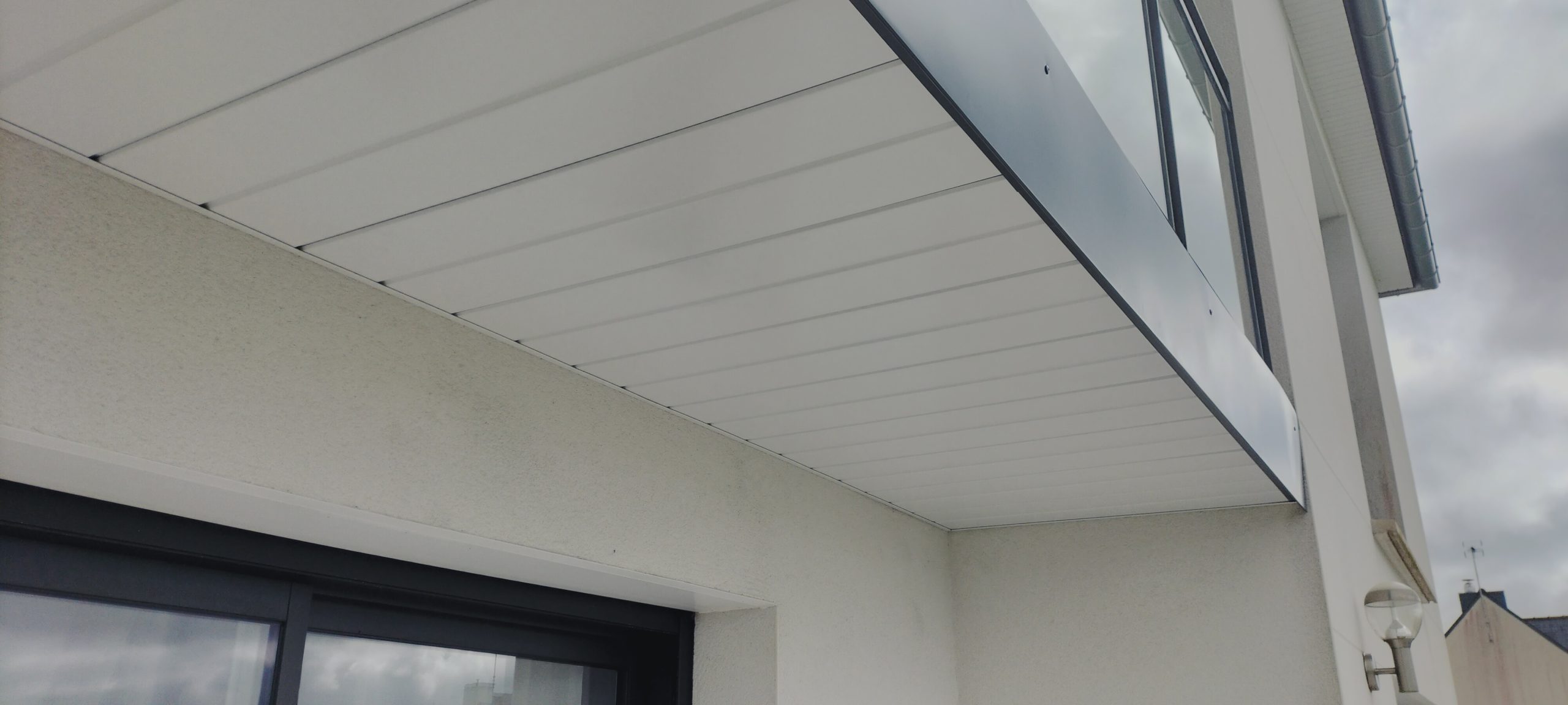 HABILLAGE d’une avancée avec de la sous face SF1219 couleur P17 avec habillage nez de dalle béton