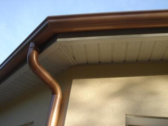 Gouttiere Demi Ronde Alumium SM33 couleur cuivre C9 avec sous face SF129 et bandeau alu blanc