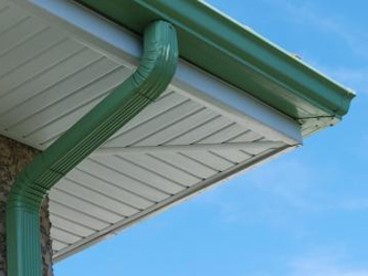 Rénovation complete d’une avancée de toiture avec de la sous face SF77 et du bandeau en Aluminium et installation d’une Gouttiere Aluminium G300 vert amande VAP16